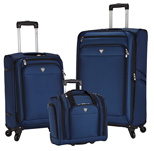 Studio : Travelers Club Luggage Publisher : Travelers Club Luggage Binding : Apparel Product Description The Monterey Collection is designed with a light weight yet durable fabric and additional features to make your traveling experience easy and stress free. Some of these convenient features include a telescopic trolley handle with a push-button mechanism for easy maneuvering, spinner wheels to provide 360 effortless mobility, and a fully-lined interior with adjustable compression straps to hold contents into place. The set includes a 28 expandable rolling upright, a 20 expandable rolling upright, and a 15 underseater. 0