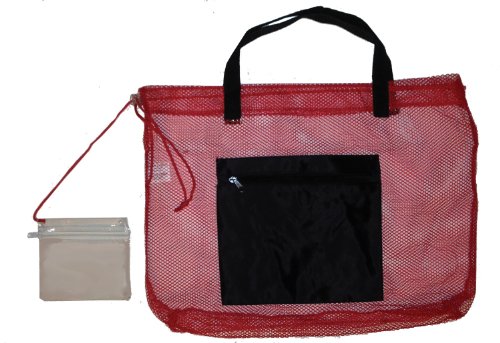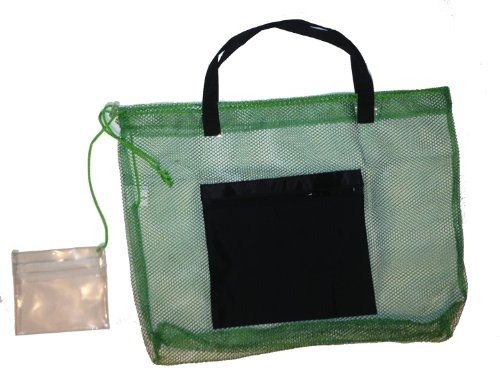 -. Title : Mesh Beach Bag Tote with Zipper Pocket