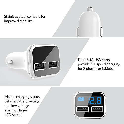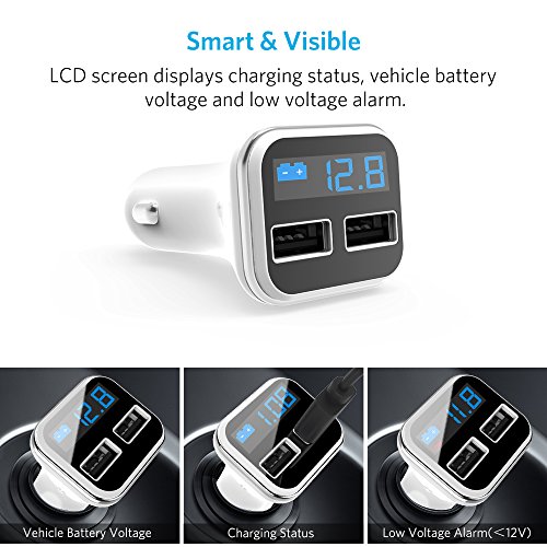 Studio : ARCHEER Publisher : ARCHEER Binding : Wireless Phone Accessory Product Description The Archeer 4.8A dual USB car charger is by far the most advanced in-car USB charger adapter, Comparing to other alternatives, with a LCD screen to let you know the charging status and the car battery voltage in a simple and precise way. Two 2.4A usb output allows you to charge 2 devices (like your iPhone and iPad) at the same time while driving.