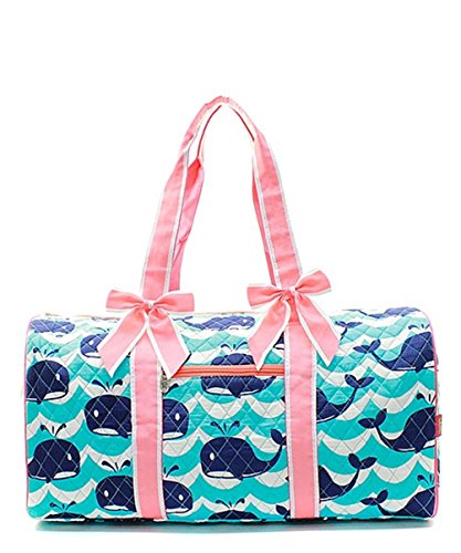 -. Brand : J&C Family Owned -. Color : Multi -. Department : unisex-adult (lage only) -. EAN : 0792481205158 -. Feature : Family Owned/Operated, US America Seller, Quick Shipping / Quilted Duffle Bag / Can be monogrammed after purchase / Great Bag for any purpose / Size: 20 "L X 11 "D X 11 "H -. NumberOfItems : 1 -. ProductGroup : Apparel -. ProductTypeName : LAGE -. Size : One Size -. Title : J&C Splash Whale Monogram Ready Quilted 20" Duffle Bag -. UPC : 792481205158