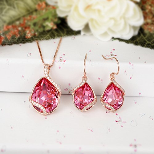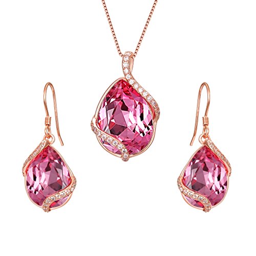 -. Title : EVER FAITH 925 Sterling Silver CZ Twist Teardrop Adjustable Pendant Necklace Earrings Set Adorned with Swarovski crystals