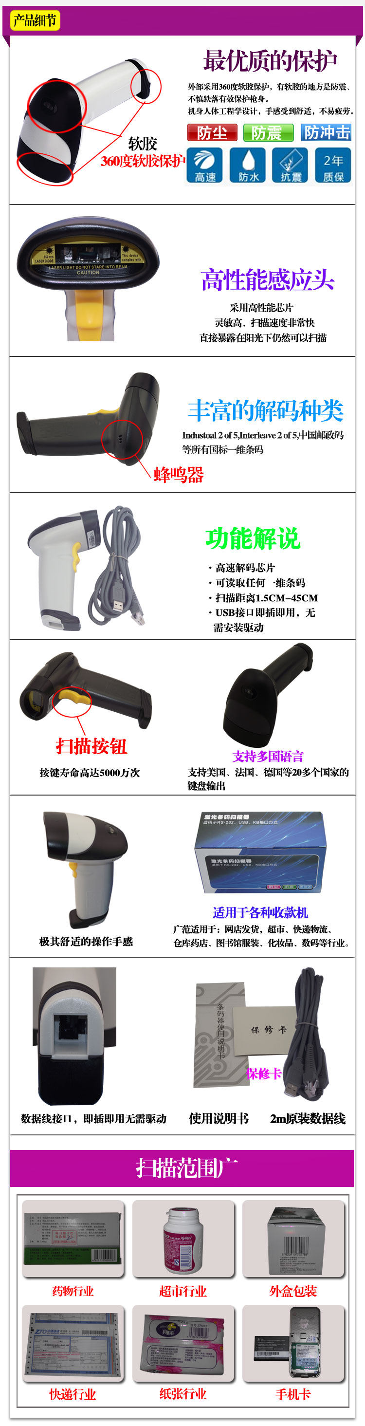 Reading Distance: 2.5 - 600mm (100% UPC/EAN)