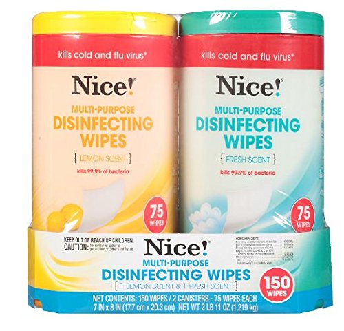 -. Feature : Contains one canister of 75 lemon scent wipes and one canister of 75 fresh scent wipes / Multipurpose Disinfectant Wipes / 7 in x 8 in (17.7 cm x 20.3 cm) each / Kills 99.9% of bacteria / Contains no phosphates