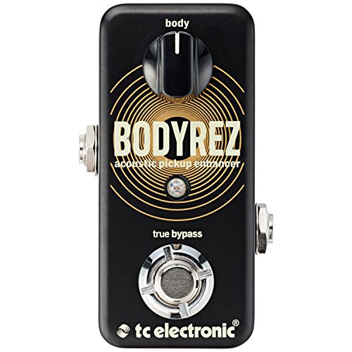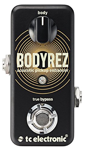 Studio : TC Electronic Publisher : TC Electronic Binding : Electronics Product Description BodyRez is the new must-have tool for every acoustic player out there. Designed to restore the natural acoustic resonance of your instrument when using under-saddle pickups, BodyRez gives you a more natural sound simply with the turn of a single knob. Getting great acoustic tone couldn't possibly be easier, with harmonic bliss now just a stomp away. There's nothing more captivating than the natural rich and crisp sound of an acoustic guitar. Sadly, most acoustic pickups take that full 3-dimensional sound and make it flatter and more uninviting than a burned pancake. This is where BodyRez comes in. With BodyRez it's like having your own personal pro audio engineer along with you at all times, making sure that you sound your best all while eliminating potential feedback traps. Once you plug this pedal in, you're going to wonder how you ever lived without it! Even though BodyRez emanates simplicity with its one dial design, there's tons of cool things going on under the hood. BodyRez applies a vast amount of pre-configured filters combined with subtle quick compression in order to bring your amplified acoustic tone back to life. All of these factors have been painstakingly measured and meticulously selected to help bring out all that's good about your instrument. So all you have to do is turn it on and start wowing the crowd. When you play your acoustic guitar at home everything just feels right. The tone, the response, the natural ambiance - it's all there. But on stage and plugged into a PA, it's a whole different story. BodyRez restores that natural feeling of you playing your guitar, acoustically opposed to that super sensitive and nervous feel you get when using a piezo system. We could use words like "forgiving" and "organic" to describe what BodyRez does, but we know that once you try it you'll know exactly what we're talking about. 0