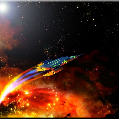 Rikki Knight RK-12intilec-8882 12" X 12" Red-Hot Spaceship & Nebula Design Ceramic Art Tile