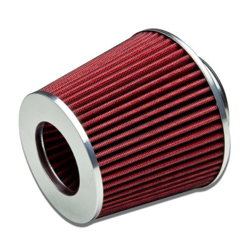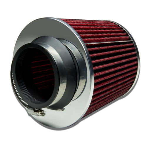 3" Inlet x 6.3" Air Intake Chrome Open Top Cone Air Filter (Red)