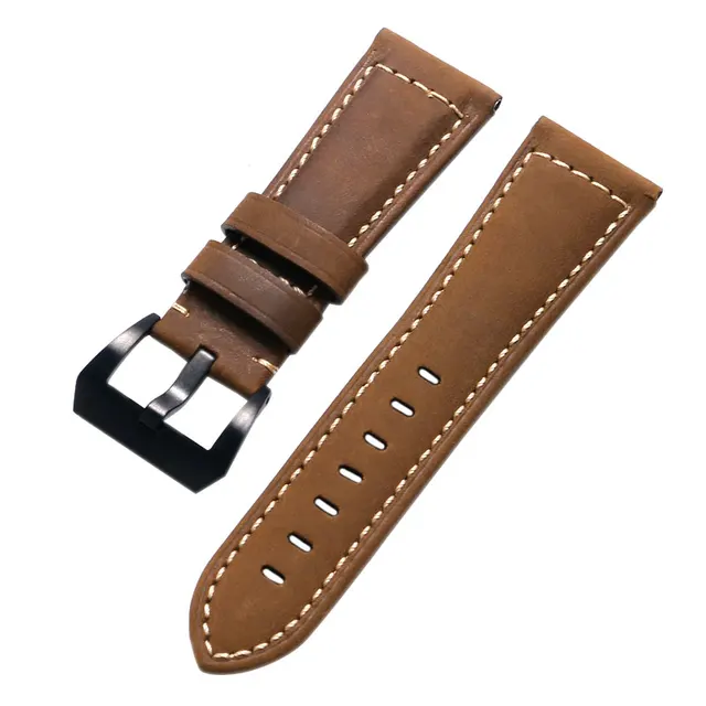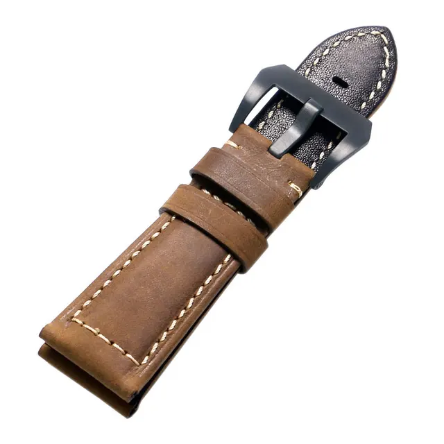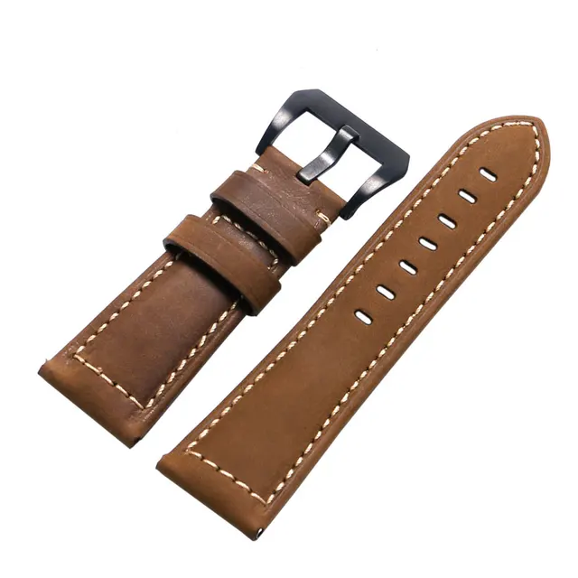 높은 품질 미친 말 1 개 24 미리메터 26 미리메터 정품 가죽 손목 시계 남성 시계 스트랩 스포츠 시계 교체 핀 버클