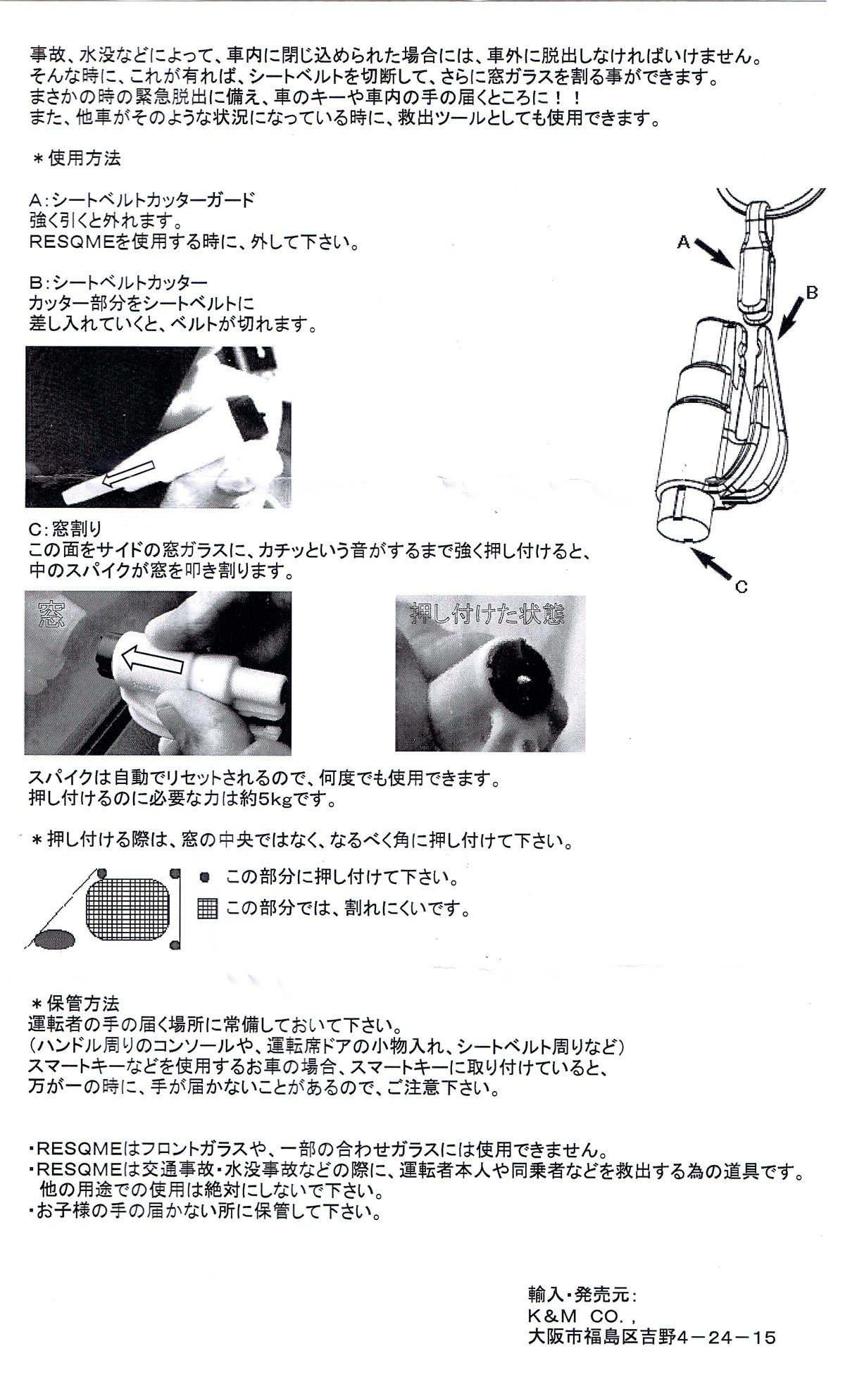 It is an epoch-making tool to escape from the trapped car interior.