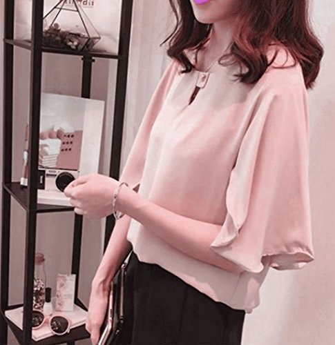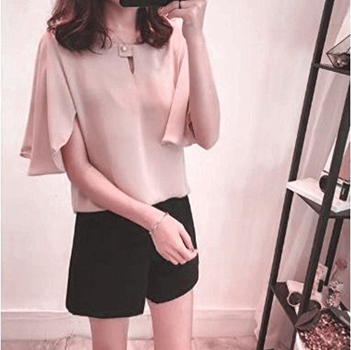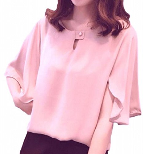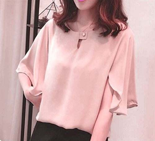 -. Title : (TERA Dream) ブラウス フレア袖 サラサラ生地 襟元 ボタン留め レディースピンク L