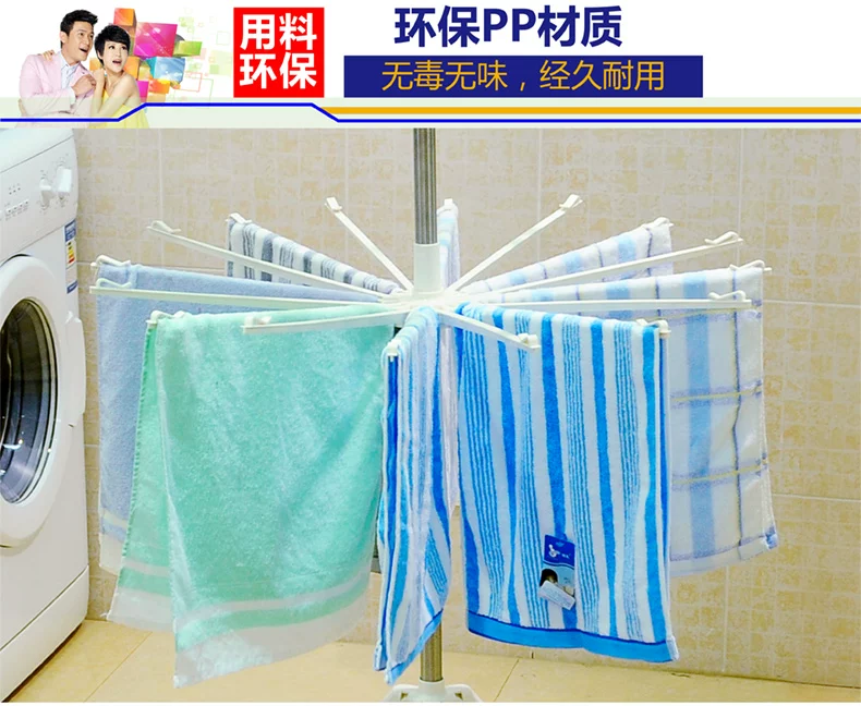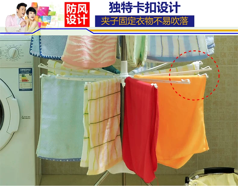 2) 此款室外毛巾架配备的多个小夹子还可夹挂袜子等多种小物件,洗净的毛巾、围巾等利用晾晒杆上的塑料小卡头可防止被风刮落。