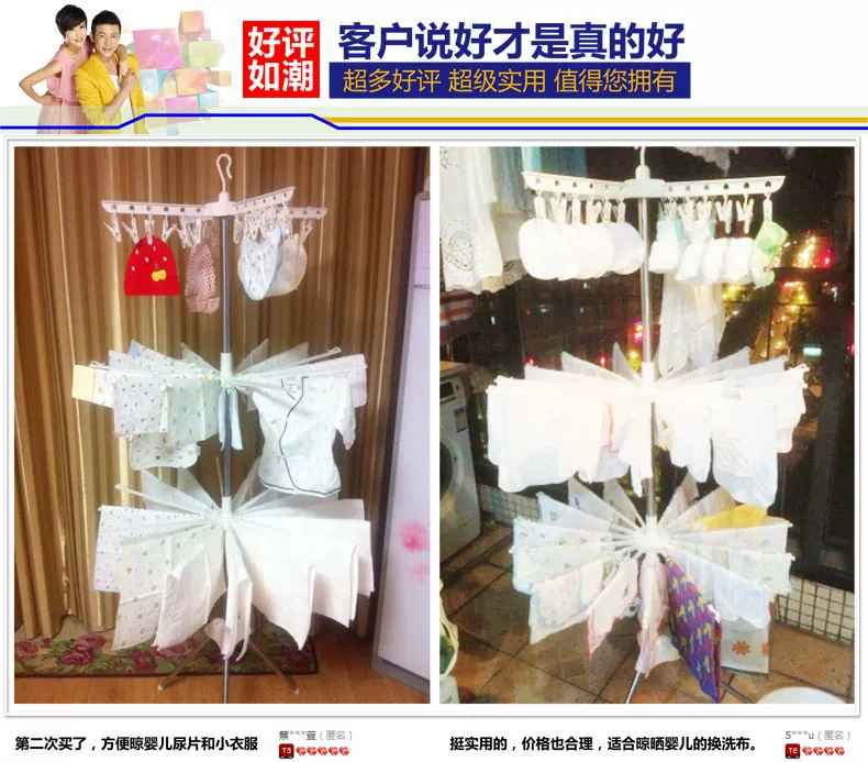 3) 塑料上的小孔设计方便挂晒衣架,晾晒更多衣物可充当阳台晾晒架和浴室毛巾架。
