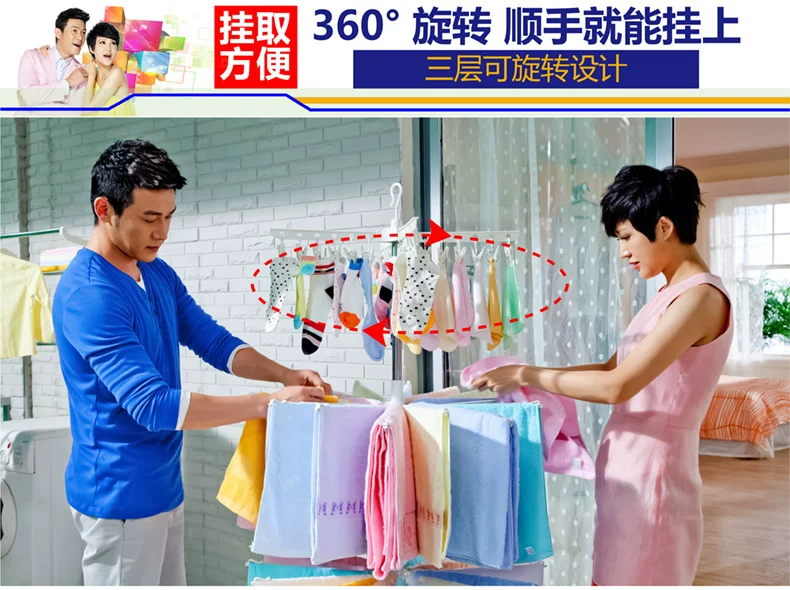 4) 顶部的带夹毛巾架还可取下来单独使用,成为独立的晾衣夹,随手夹挂您的手帕、袜子等细小物件!