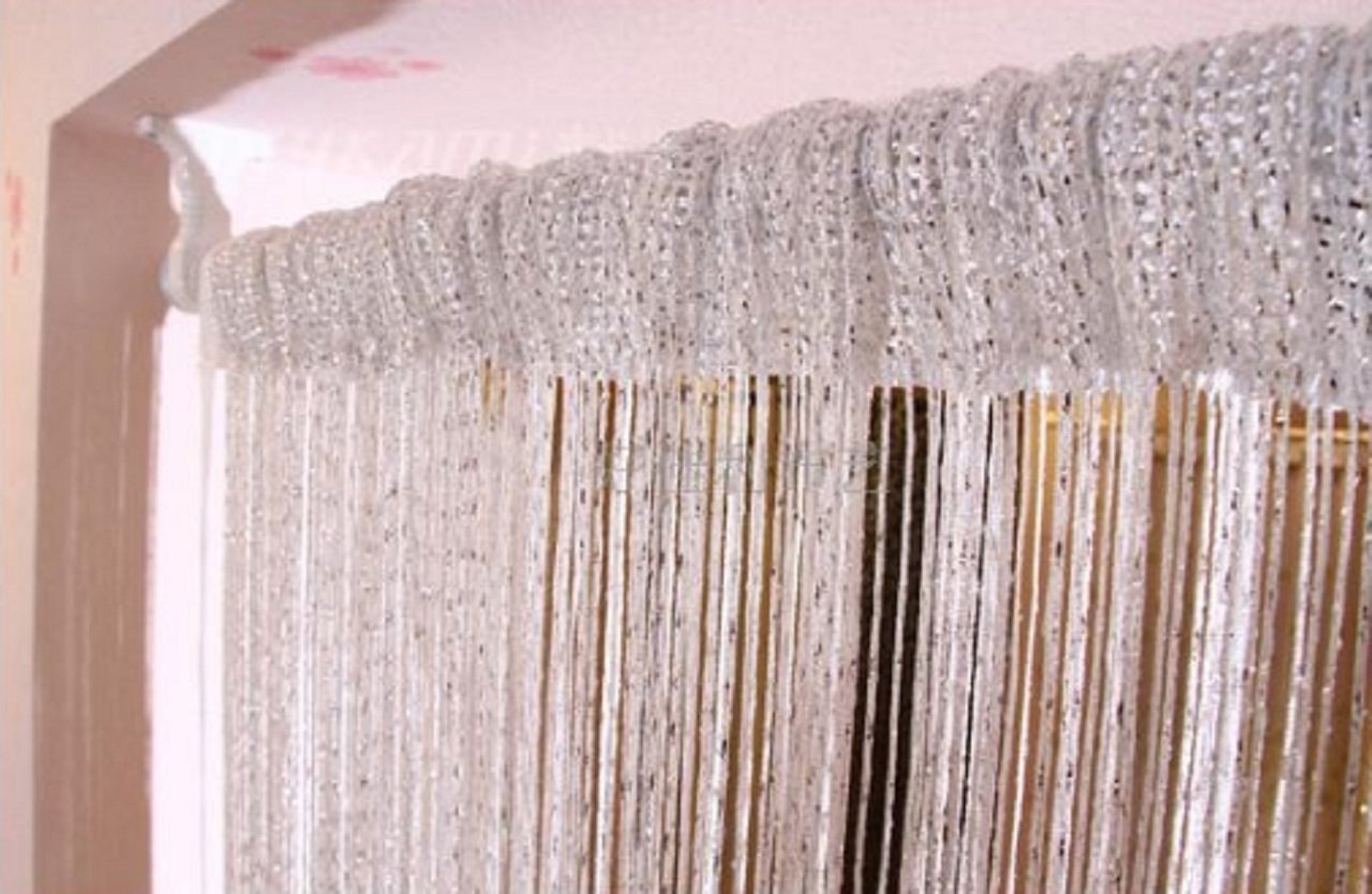 Partition with string curtain (string goodwill), glittering shimmering lamé features gorgeous decoration of interior decoration.