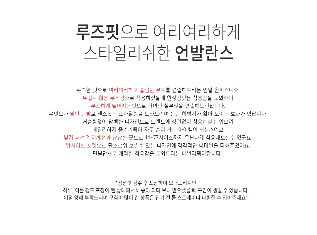 .같은 사이즈라도 체형에 따라 핏감이 조금씩 다를 수 있습니다.