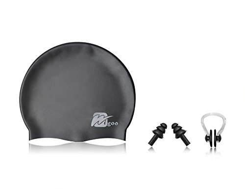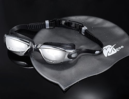 Wigoo Swim Goggles - Swimming Goggles No Leaking, Anti-Fog, UV Protection - Free Protection Case with Swim Silicone Cap, Earplugs, Nose Clips - Size for Men Women Adult Youth Kids Child (Black)