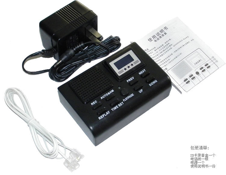 SD card for the recording of the first storage media for the independent type of telephone recording box, the size of only 102 * 65 * 30mm, weight 120 grams, ultra-portable, that is recorded immediately, is ideal for personal and business users of telephone recording needs.