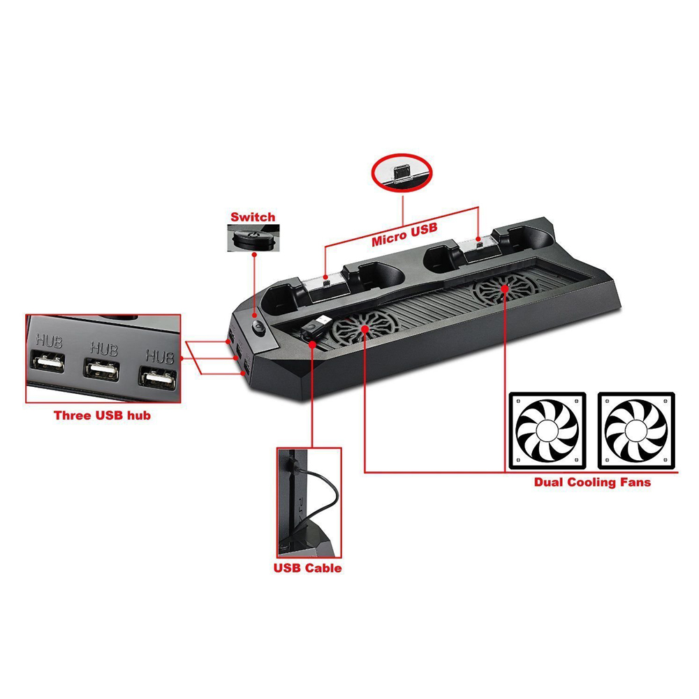 Vertical Stand Cooling Fan, For?PlayStation 4 Console Cooler with Charging For PS4 NI5L