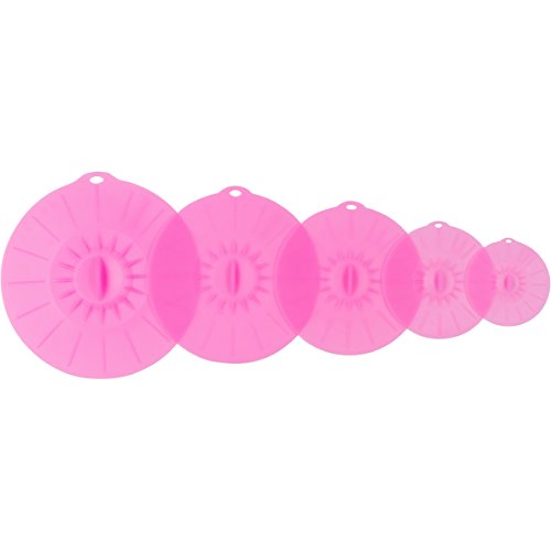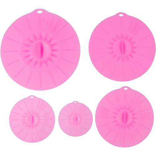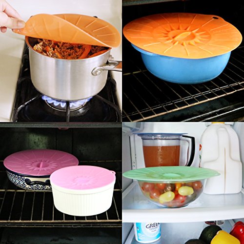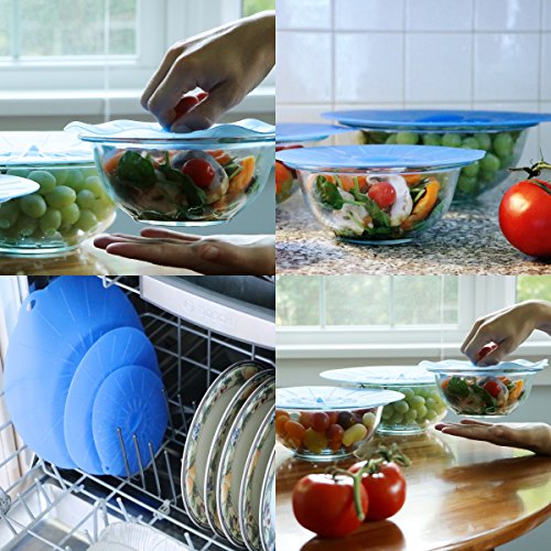 Culinary Couture's Silicone Lids Will Make Life In The Kitchen Much Easier Did you prepare a sweet you need to leave it aside? Don't let it uncovered on a dish! Dust can stick to it and it can get dry. Seal it with the Silicone Lids to keep it fresh for longer. The airtight Cover with the silicone rims will not let the air get in or escape. Use it also to keep food warm or as a Lid for your pans while you are frying or boiling food. It can stand up to 450F. 5 Practical Silicone Lids In 5 Different Sizes This is a set of 5 Silicone Seals and each one of them has a different size. In fact, the inches of the Covers are: ? 6" ? 8" ? 10" ? 12" ? 14"