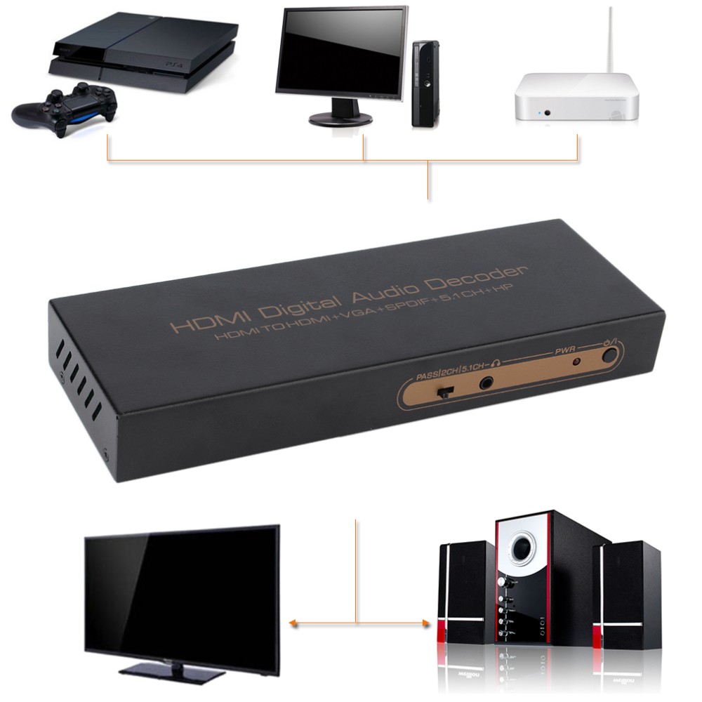 Top Sale 1080P HDMI TO HDMI VGA SPDIF 5.1CH RCA Digital multi-channel Audio Decoders Support CEC and HDCP