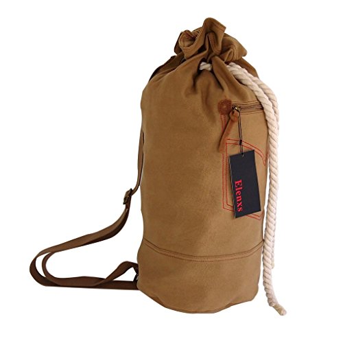 -. Binding : Misc. -. Brand : Elenxs -. Feature : Size: 9.45"* 9.45"* 22.8".(1 inch=2.54cm) / Material: Canvas. / The style of the bag is personality, which shows your outstanding temperament / You can take clothes,sunglasses,keys,mobile or anthing you want go hiking!Enjoy the sunshine and wonderful travel! / Package included: 1 x Backpack -. IsAutographed : 0 -. IsMemorabilia : 0 -. Label : Elenxs -. Manufacturer : Elenxs -. ProductGroup : Sports -. ProductTypeName : SPORTING_GOODS -. Publisher : Elenxs -. Studio : Elenxs -. Title : Elenxs Canvas Bag Men's Duffle School Sporting Gym Hiking Weekend Lage Strong Shoulder Strap Bag