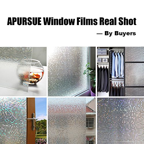 APURSUE 3d Non-Adhesive Privacy Window Film Static Cling Decorative No Glue Decor Glass Door Window Film Privacy Protection Heat Control Anti UV Glass Stickers Paper, 17.7in. By 78.7in.