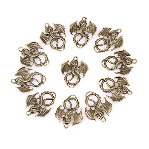 20 Pieces Flying Courage Dragon Lucky Charms Findings for Jewelry Pendants Necklaces Making 34mm X 27mm