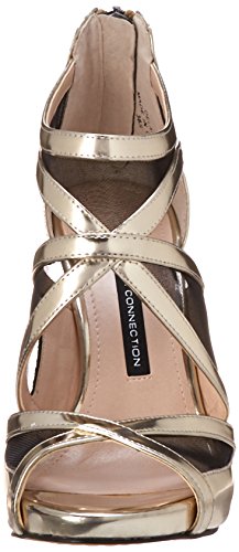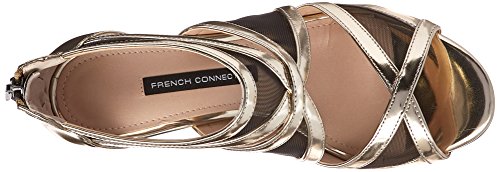 Open-toe dress sandal featuring crisscross straps with thin mesh underlay
