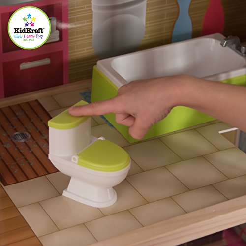 - Feature : 25 detailed pieces of furniture / Lamp lights up at the push of a button / Keyboard plays music at the push of a button / Toilet makes realistic flushing sound at push of a button / Smooth gliding elevator moves all the way from the first floor to the third floor