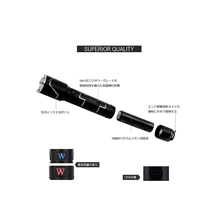 원본상품명: WUBEN ?中電? LED ?力 ハンディライト 超明るくて 防水耐震防災防犯 アウトドア適用 I333(ブラック)