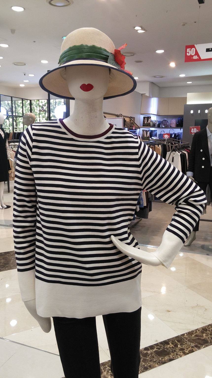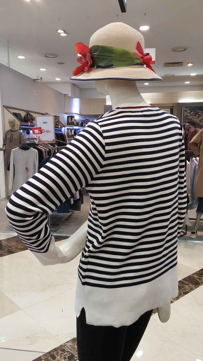 심플한 투톤 줄무늬에 배색처리된 넥라인이 단정하면서도 세련된 느낌을 주며 탄탄하고 도톰한 두께감으로 핏라인이 딱 떨어지는 디자인입니다. 프리사이즈 어깨넓이36cm 가슴둘레92cm 총길이63cm입니다.브릭색상입니다.아이보리색상입니다.