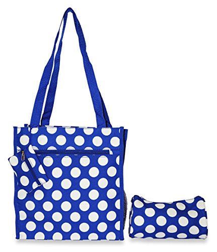 Great matching three piece set to keep you organized while you are on the go! The set includes tote bag, coin purse and matching cosmetic makeup bag. Functional Yet Stylish The Ever Moda Tote Bag Set Designer Print Collection ditches the boring and dull. With more than 10 colors and patterns available, you have a handful of choices to fit your unique, personal style. It has a height of 12 inches, making it big enough for daily shopping or trip to the grocery store. Versatility and Durability Made out of a strong microfiber material, this multi-purpose travel tote bag can handle whatever you throw in it, even when you need to frequently use it. This lightweight shoulder handbag is a fashionable choice for a reusable grocery bag, school bag, or beach bag to throw over your shoulder and go. Exterior velcro, zipper, and mesh pockets make for easy and accessible organization. Its considerable space is perfect for books, pen, notepad, a pair of earphones, keys, cards, passport, tickets, wallet and a lot more you can add. Cleaning is a Walk in the Park Its nylon lining makes for easy cleanup of accidental spills. Features a zip top as well as a velcro closure for extra security.In a fashionable print, it's a great addition to any outfit and is sure to get you noticed when out and about, whether you're going to the mall, meet a friend in the city or at the supermarket. Made out of durable microfiber, this compact, versatile satchel with matching cosmetic bag is great to just throw over your shoulder and go! 0 |