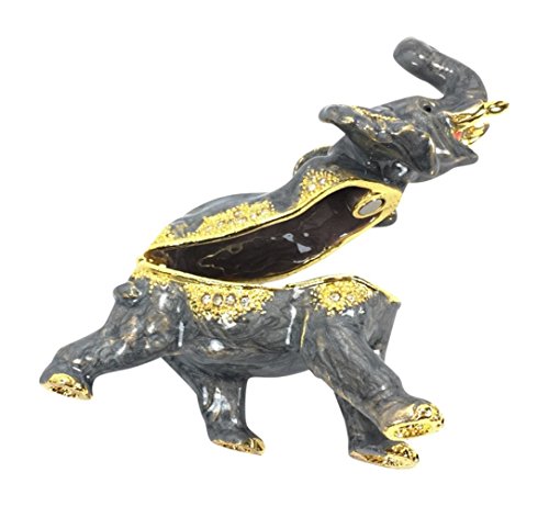 Lucky Elephant Pewter Enameled Trinket Box 3.5 Tall