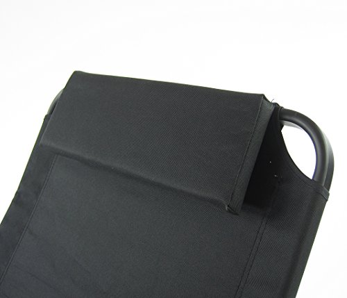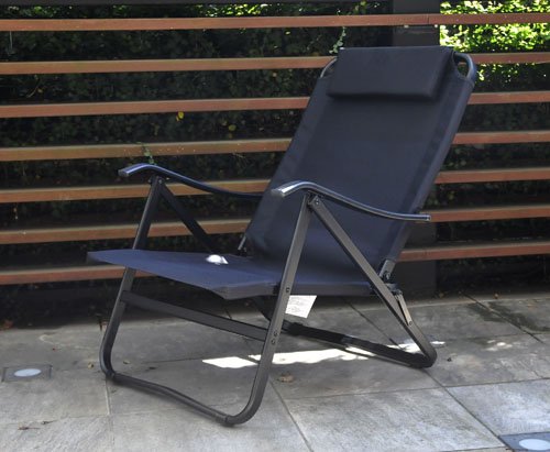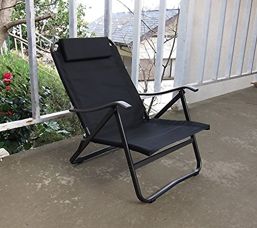 - Feature : A chair made by originated Japanese designer. / Lightweight yet sturdy ribbed aluminum frame in black. Cozy and roomy seat made of durable 600D polyester fabric. / Ergonomic support from angled backrest and solid armrests. Sewn-in cushioned headrest for extra comfort. / Flat-folded compactly and easy to carry. / Size of chair: W24.4"xD21.6"xH30.7" (open), W5.9"xD21.6"xH30.7" (folded). Seat height: about 16.7". Chair weighs 6.4lbs only but it supports weight up to 250 lbs.