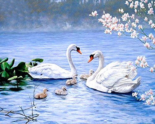 21secret 5D Diamond Diy Painting Full Drill Handmade Happiness Swan Family Lake Flower Cross Stitch Home Decor Embroidery Kit
