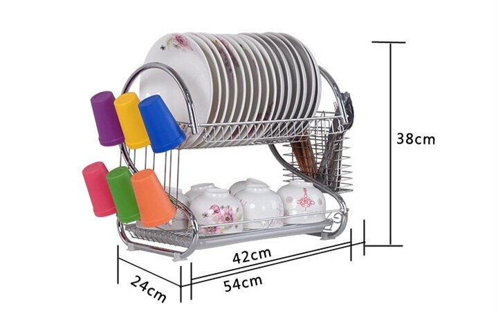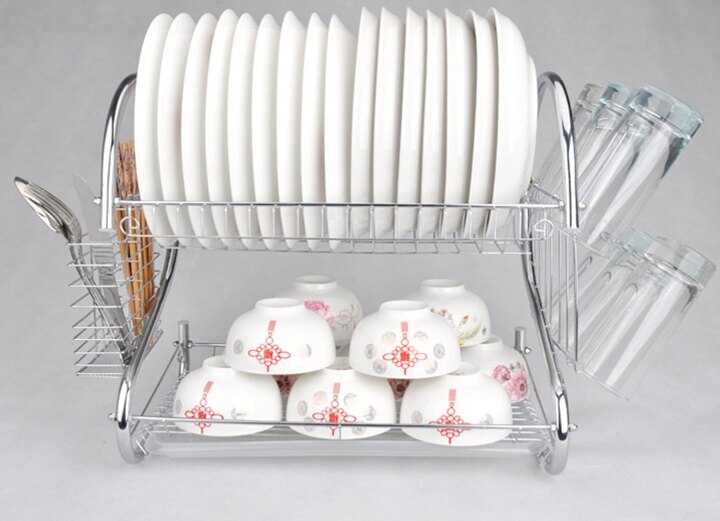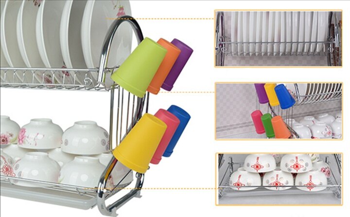 - 1 x Complete Set 2 - LayerHome Kitchen Dish Rack Stainless Steel Durable Steel S-Design
