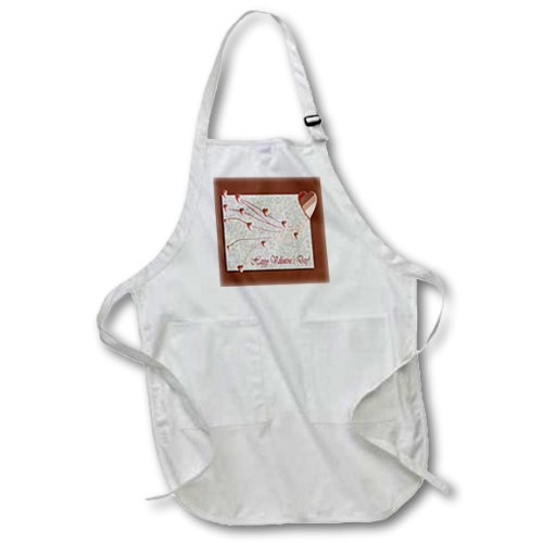 3dRose apr_37045_1 Happy Valintines Day, Copper Hearts-Full Length Apron with Pockets, 22 by 30-Inch, White