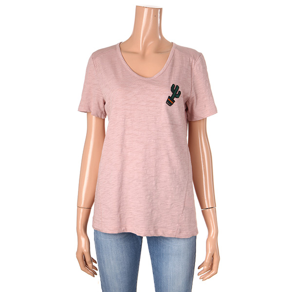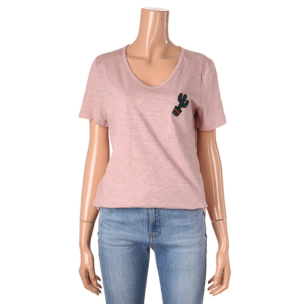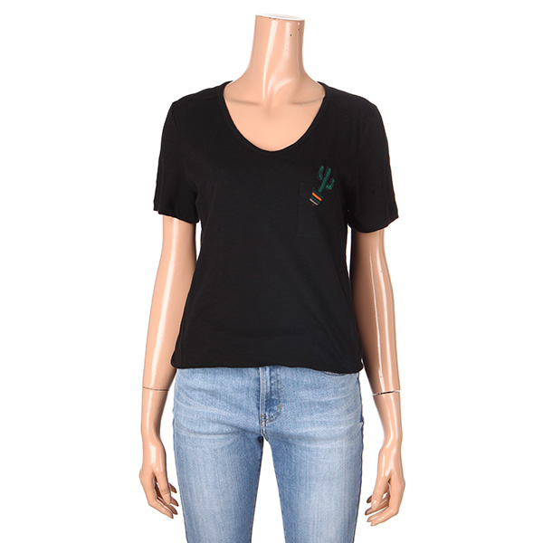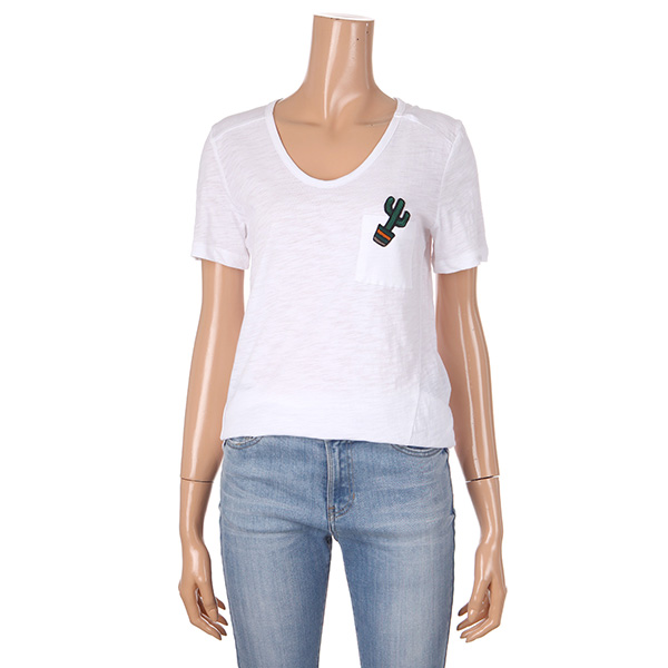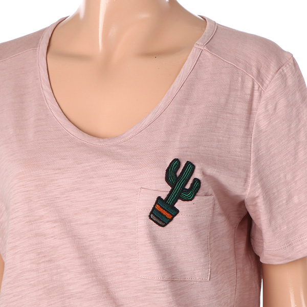 포켓 부분에 선인장이 패치되어있는 기본형 유넥 티셔츠입니다. 부담스럽지 않은 넥라인으로 코디하시기 좋습니다.