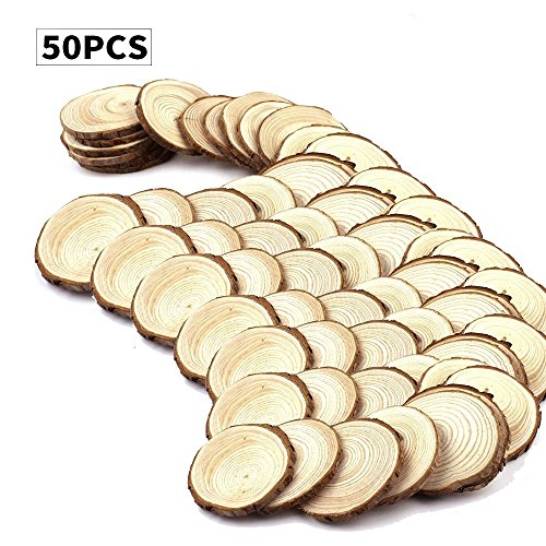 Fuhaieec 50pcs 2.0-2.4" Unfinished Natural Wood Circles with Tree Bark Log Discs for DIY Craft Christmas Rustic Wedding Ornaments