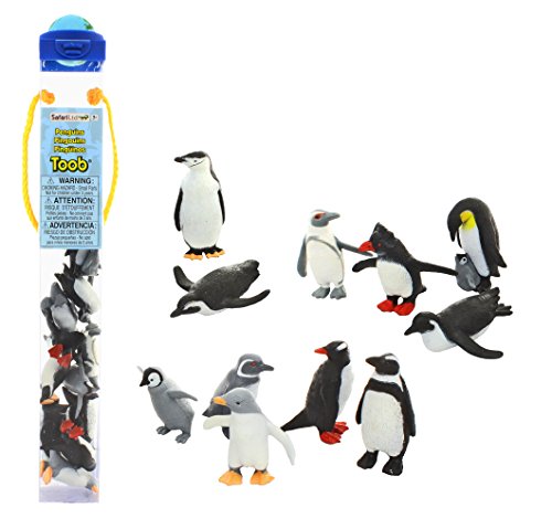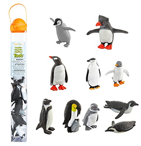 -. Feature : SET OF 10 FLIGHTLESS FRIENDS - Penguins live all over the world (not just in the arctic), but all penguins are flightless birds that spend most of their life in the sea. This TOOB features some of the best known penguins in different poses and stages in life, including a Gentoo Penguin, Humboldt Penguin, Chinstrap Penguin, Rockhopper Penguin, Galapagos Penguin, Adelie Penguin, Swimming Penguin, Sliding Penguin, Penguin Chick, and a Penguin with Baby. / COMES IN CONVENIENT TOOB - All these animals pack neatly into a reusable tube, making them easy to store and carry-along. For cleaning, just wipe with a damp cloth. / TOYS THAT TEACH - Each tube comes with educational information and a convenient carrying loop. The Penguin TOOB will help children learn the animals and people of the arctic who have adapted to its extreme climate. / MADE WITH INDUSTRY-LEADING STANDARDS - Even though they're small, each figurine has been individually hand painted, is detailed and realistic, and features quality construction from phthalate and lead-free materials. / TOOB SPECIFICATIONS - This Safari TOOB contains 10 figures. Replica size ranges from 1.5" to 3." TOOB measures 2"L x 2"W x 12.9"H. For ages 3 and up.