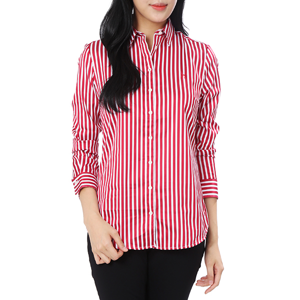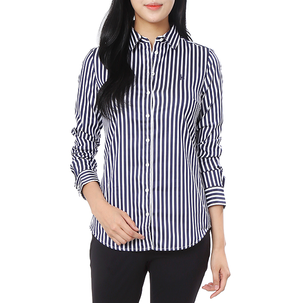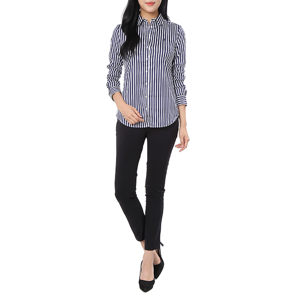 런던 스트라이프 패턴으로 세련된 외관을 보여주며 슬림핏으로 여성스러운 실루엣을 연출하여주는 셔츠입니다.
