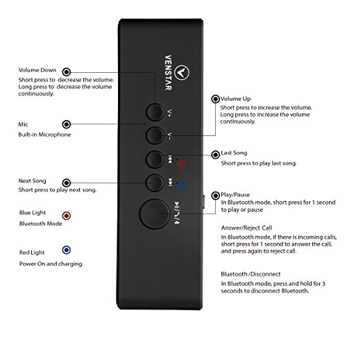 Title : Bluetooth Speakers, Venstar Wireless Portable Speakers Bluetooth 4.1, 10W (Dual 5W) Ultra Bass Strong Acoustic Drivers Up to 18 Hour Battery Life, High Definition Sound with Built-in Microphone