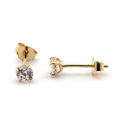-. Title : 14k Yellow Gold 3 mm 0.25ct Small Basket set Round CZ Cubic Zirconia Stud Earrings