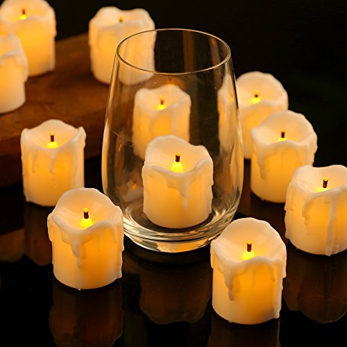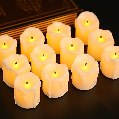 Bozdqun Set of 12 Battery Tea Lights With Timer,Battery Operated Flickering Votive Candles,Yellow Timer Flameless Candles,6 hours on,18 hours off