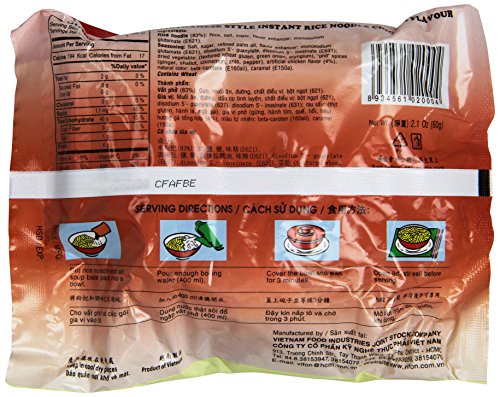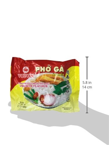 ITEM DESCRIPTIONS BRAND NEW, SEALED 30 BAGS VIETNAMESE INSTANT RICE NOODLE CHICKEN FLAVOUR OR PHO GA EACH BAG WT 60G OR 2.1OZ. BRAND VIFON INGREDIENTS: RICE, SALT, SUGAR, FLAVOR ENHANCER, MONOSODIUM GLUTAMATE SEASONINGS: SALT, SUGAR, REFINED PALM OIL, FLAVOR ENHANCER, MONOSODIUM GLUTAMATE, DISODIUM 5' -GUANYLATE, DISODIUM 5'-INOSINATE, DRIED BEGETABLE, GREEN ONION, ERYNGIUM, SPICES, GINGER, SHALLOT, CINANNAMON, ANIS, PEPPER, ARTIFICIAL CHICKEN FLAVOR, WHEAT.