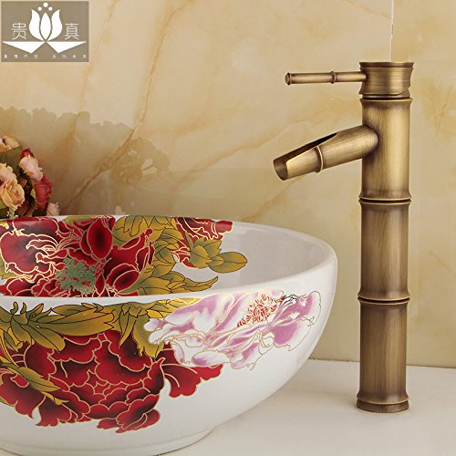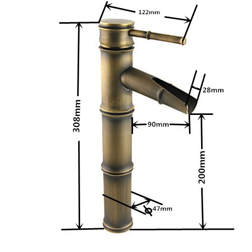 -. Feature : Antique brass bamboo shape faucet / Finish:Antique Brass / Faucet Total Height:310 mm(12.2"); Spout Height:200mm(7.87"); Spout Length:?135mm / Durable solid-brass construction; expertly crafted / Including mounting hardware, hot & cold water 9/16'' hoses