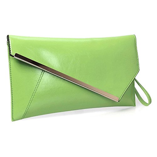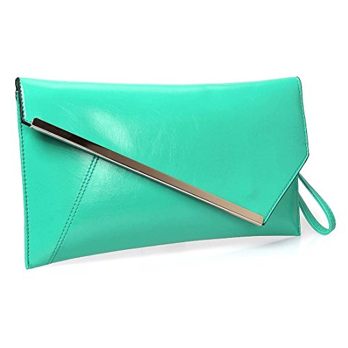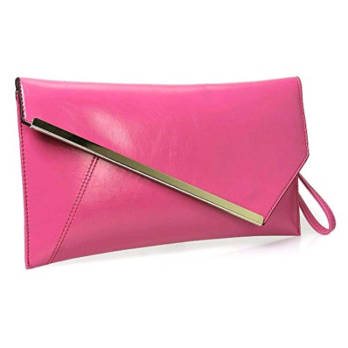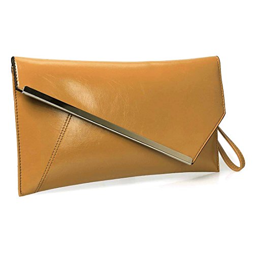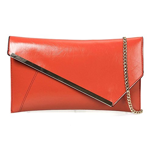 BMC Fashionably Chic Bright Orange Faux Leather Gold Metal Accent Envelope Style Statement Clutch