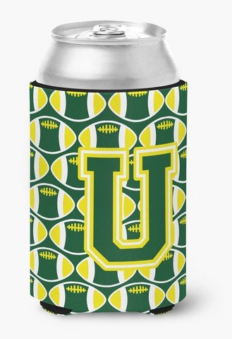 Caroline's Treasures CJ1075-UCC Letter U Football Green and Yellow Can or Bottle Hugger, Multicolor