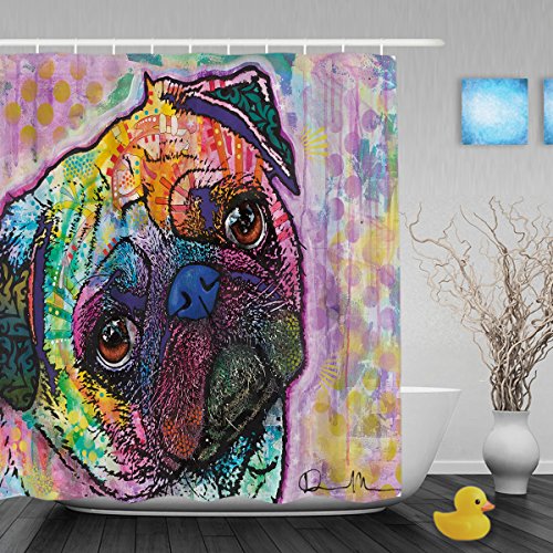CafeTime Pug Shower Curtains Cute Animals Decor Bathroom Curtains Colorful Art Dog Custom Shower Curtains Mildew Resistant Polyester Fabric Liner For Bathroom 60x72Inch
