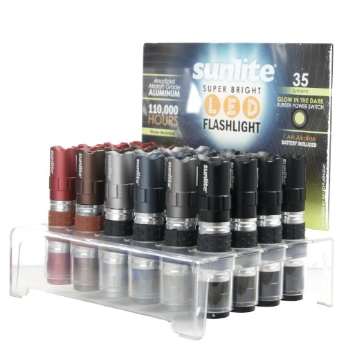 Studio : Sunshine Lighting Publisher : Sunshine Lighting Binding : Tools Home Improvement Product Description Highlighting a dedication to quality and integrity, the Sunlite product line includes compact fluorescent, linear fluorescent, incandescent, HID, metal halide, halogen, decorative, miniature, specialty, stage-studio lamps, and LED lamps. The Sunlite line also includes a full array of indoor and outdoor household fixtures, commercial fixtures, and electrical products including extension cords, socket adapters, wall plates, receptacles and switches, dimmers and timers, surge protectors, and much more. Sunlite 51006-SU AA LED Flashlight - Super Bright - 24PK w/Display 0