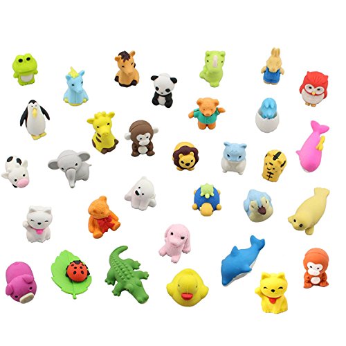 They can not only be eraser, children can decorate their little house. This will be a perfect gift for your child. Each has 24 different animal erasers. They can erase the pencil marks easily. Contains bears, frogs, dolphins, monkeys, dinosaur eggs, hamsters, tigers, giraffe, turtles, elephants, cats, pigs, horses, dogs, pandas, lions, hedgehog, flying pigs, whale, teddy bear. sometimes there will be some changes etc. Each has 24 different animal erasers. Size approx. 1" x 1",some may be smaller or loner than 1 inches. It will be a great gift for animal collectors! NOTE: The image shown is an example of the Iwako eraser line. You will receive (24pcs) brand new, randomly selected Iwako Animal series erasers. 0 |